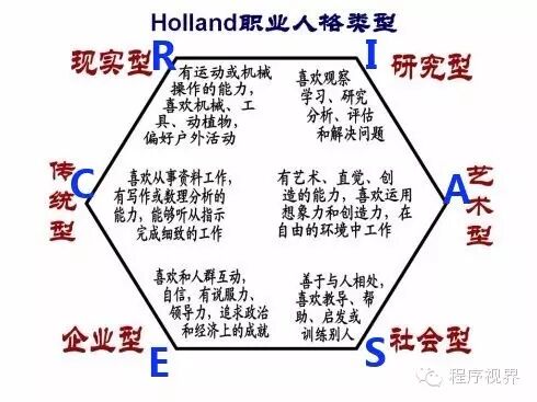 下图简要说明了霍兰德职业人格类型: