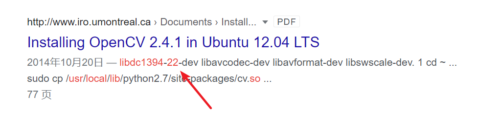 问题解决过程:其中最后一个错误我在网上baidu搜索/usr/bin/ld: warning: libdc1394.so.22, needed by搜不到,于是更换某搜索引擎,得到如下结果