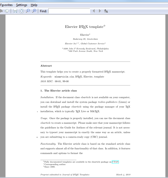 双击elsarticle-template.tex打开,编译成pdf,得到如下图所示的pdf文档: