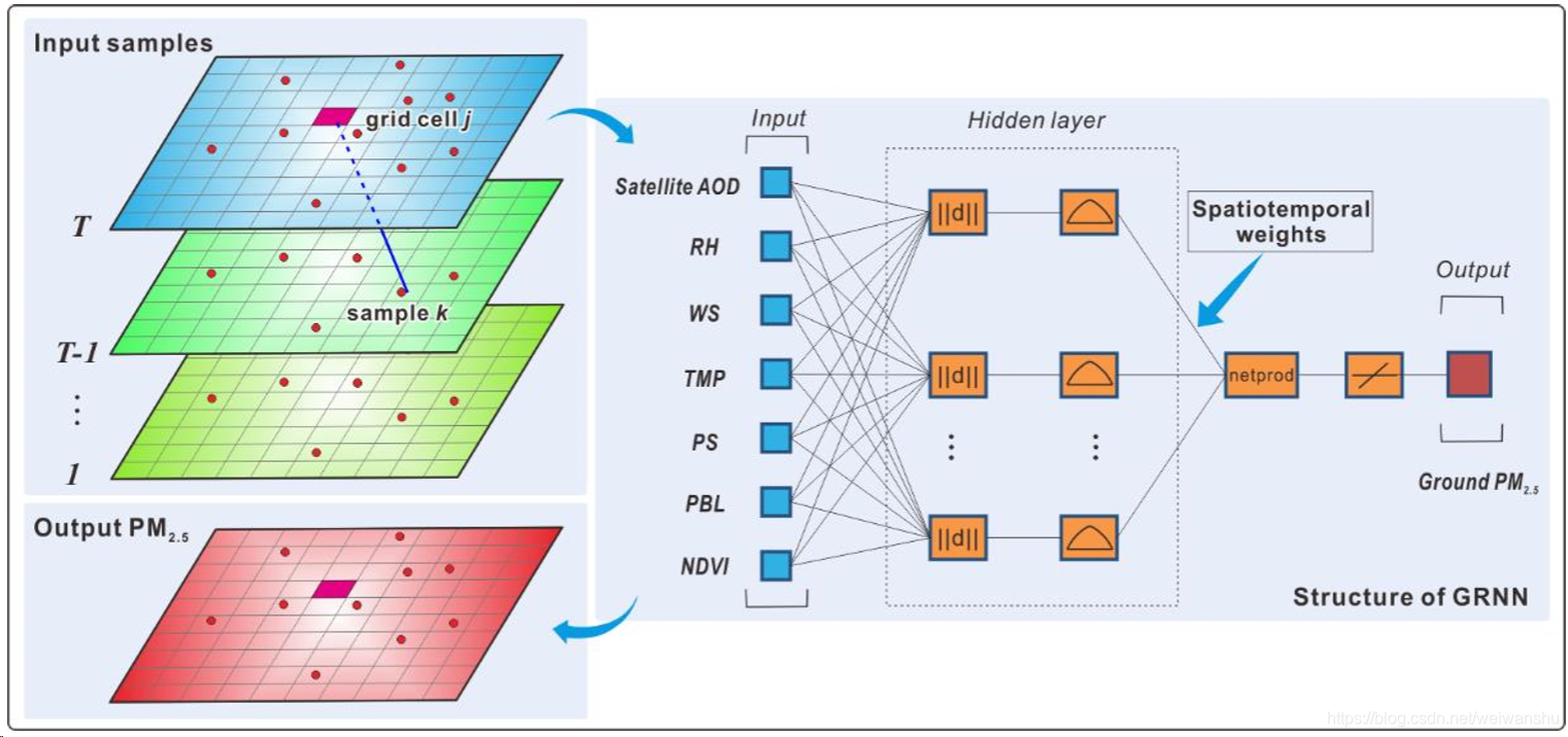 以及年天数 j 。为以地面PM2.5作为输入的时空函数,使用的是generalized regression neural network (GRNN)模型