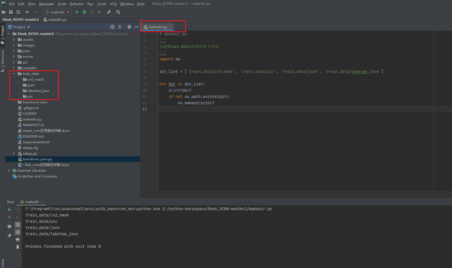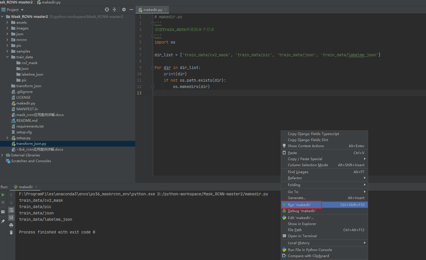 4.用右键“Run makedir”或命令“python makedir.py”生成四个子目录文件夹;