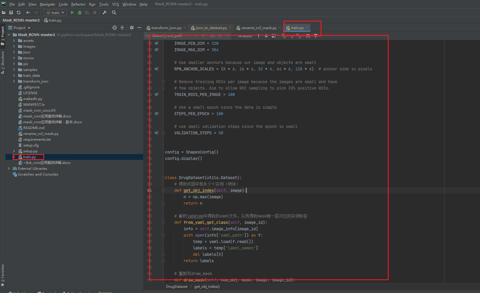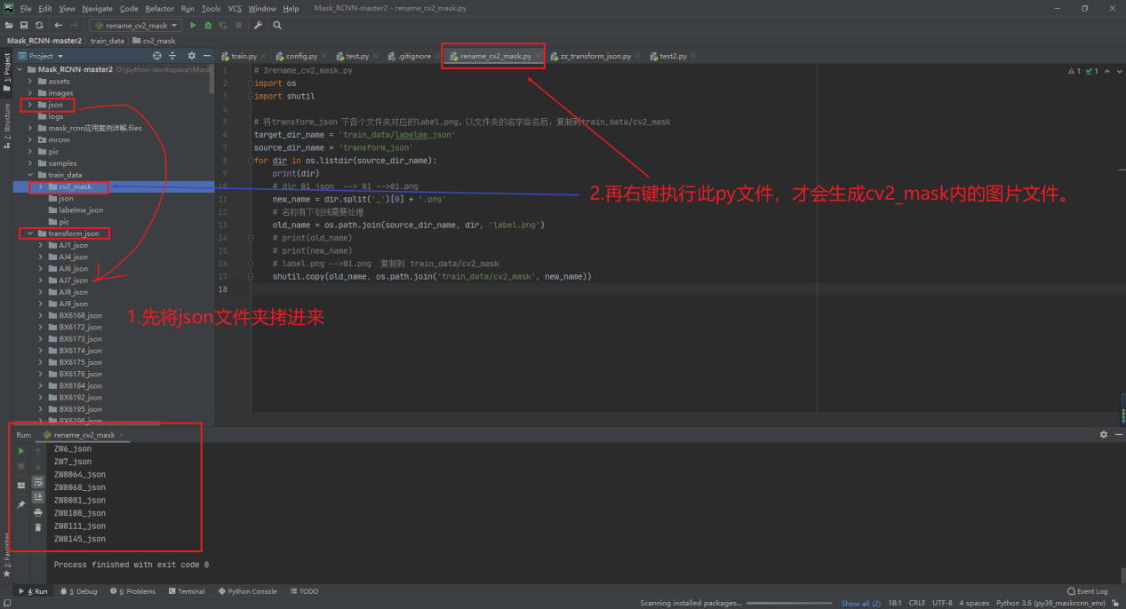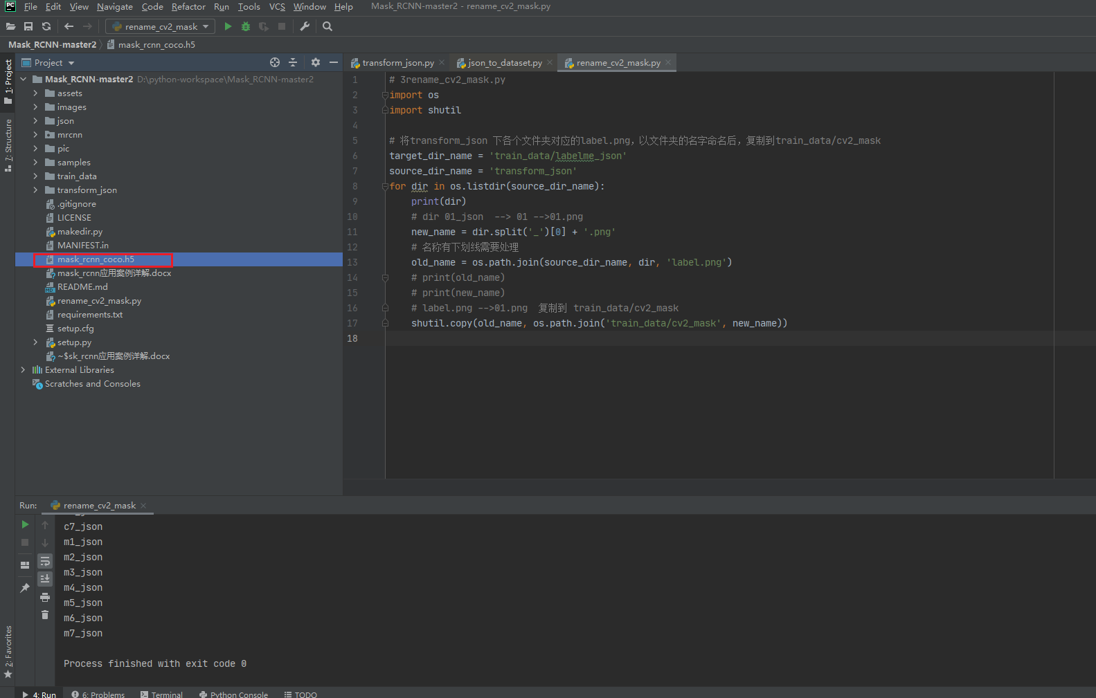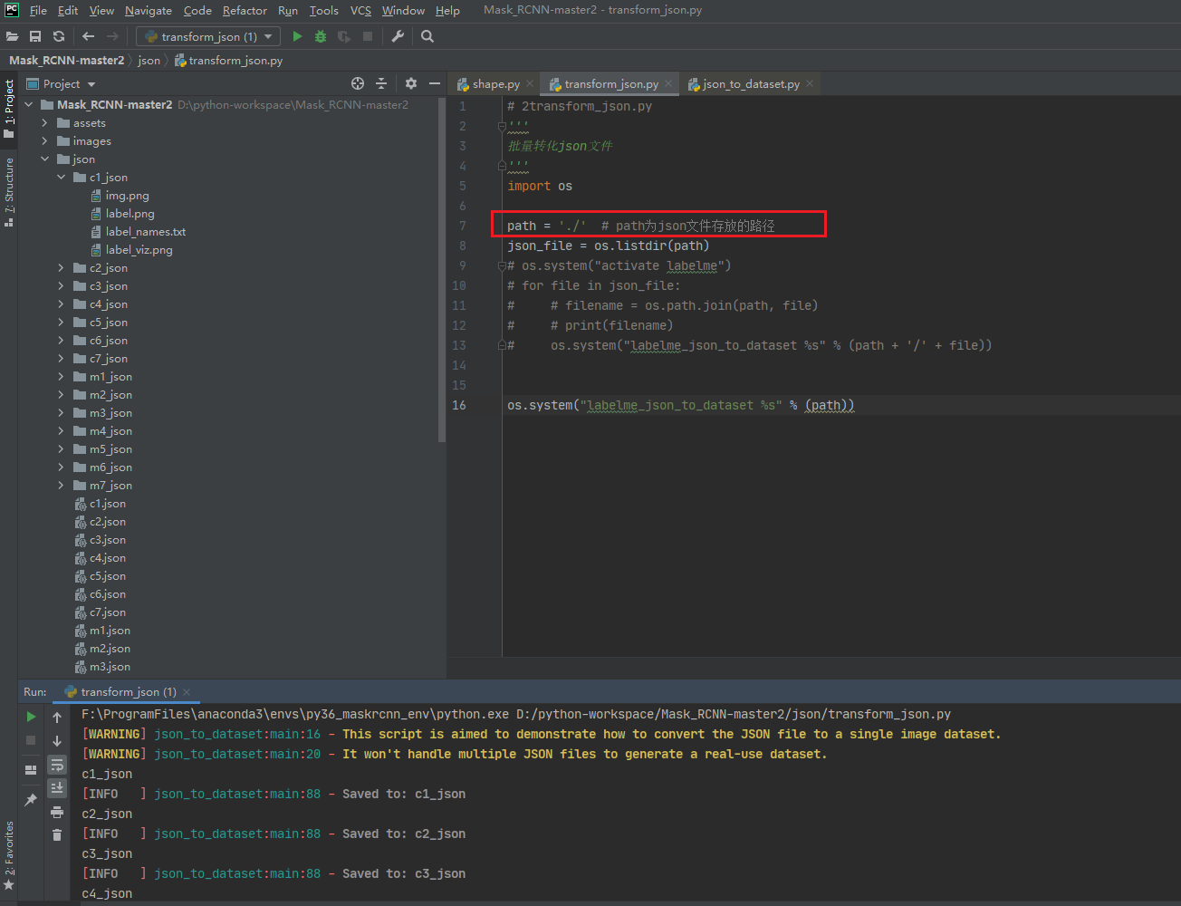 1. 将json文件转换为模型需要的mask文件,需要修改labelme源码,D:\Anaconda3\Lib\site-packages\labelme\cli\json_to_dataset.py