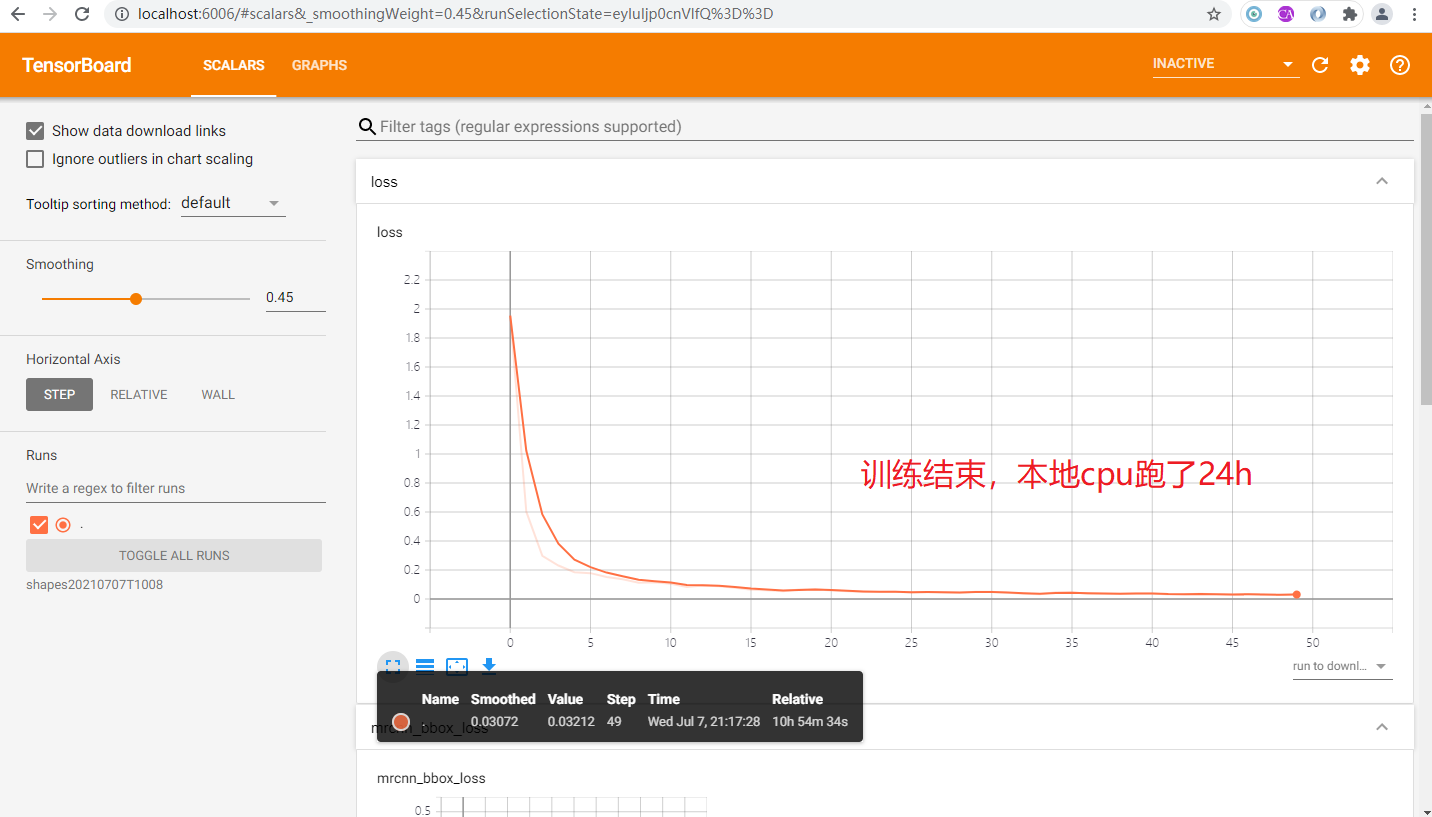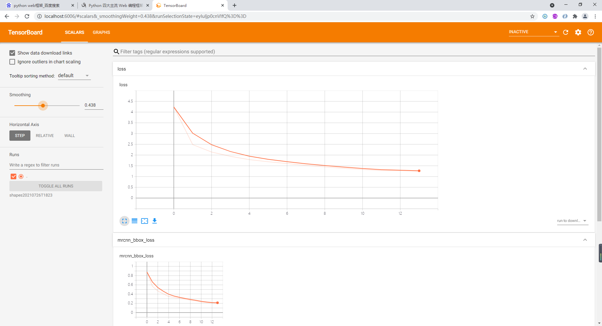 查看tensorboard可视化界面:http://localhost:6006/#scalars