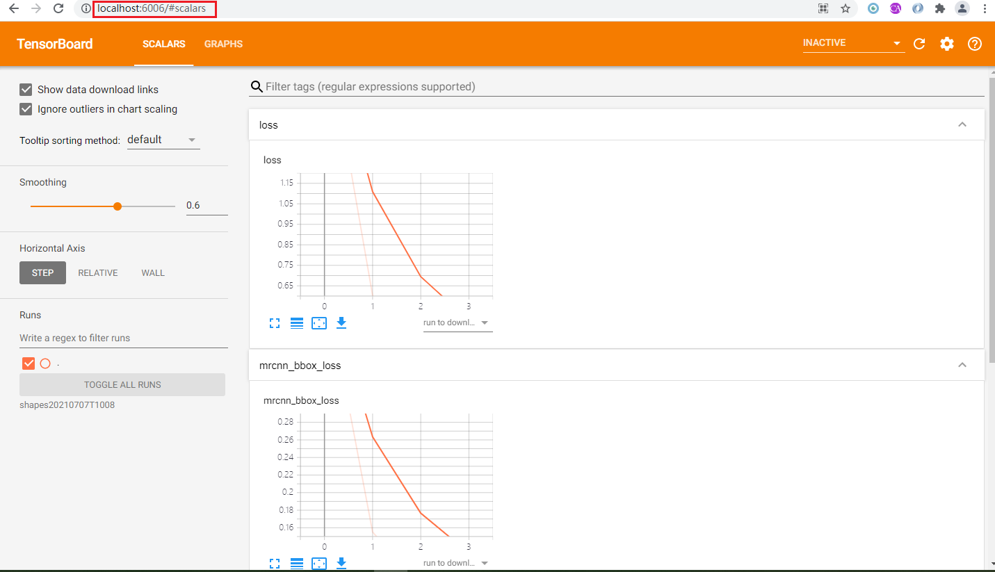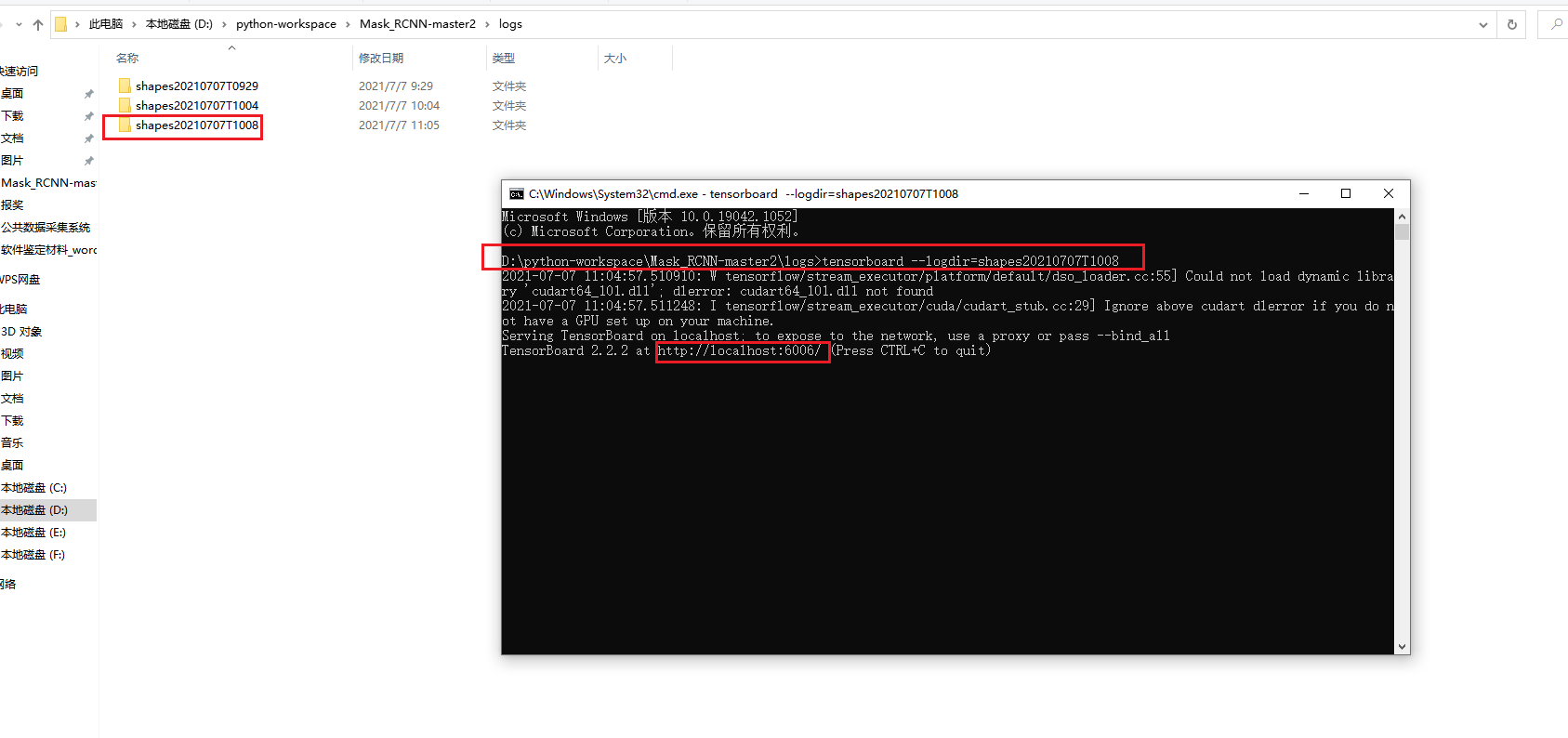 cmd命令:tensorboard --logdir=shapes20210707T1008