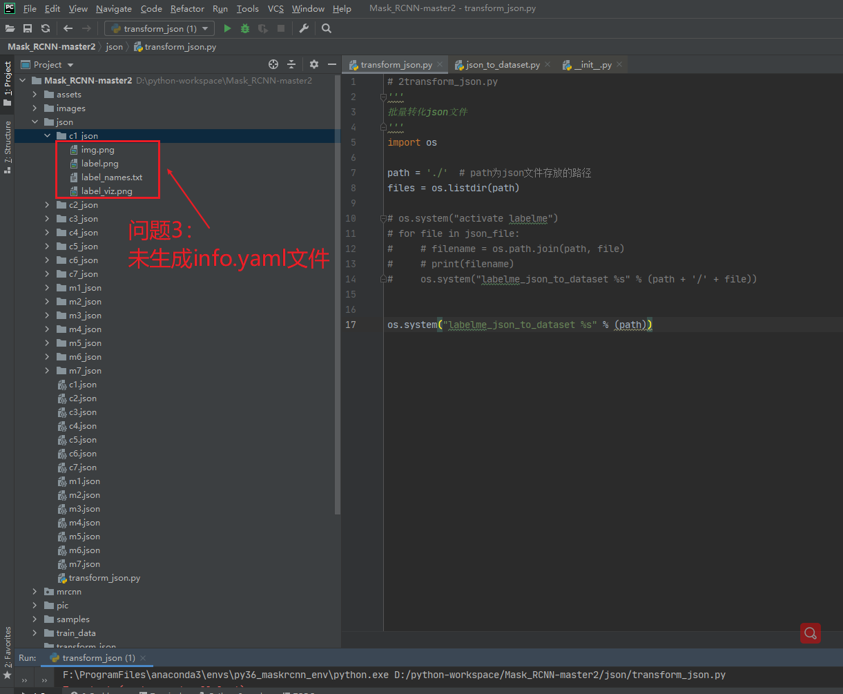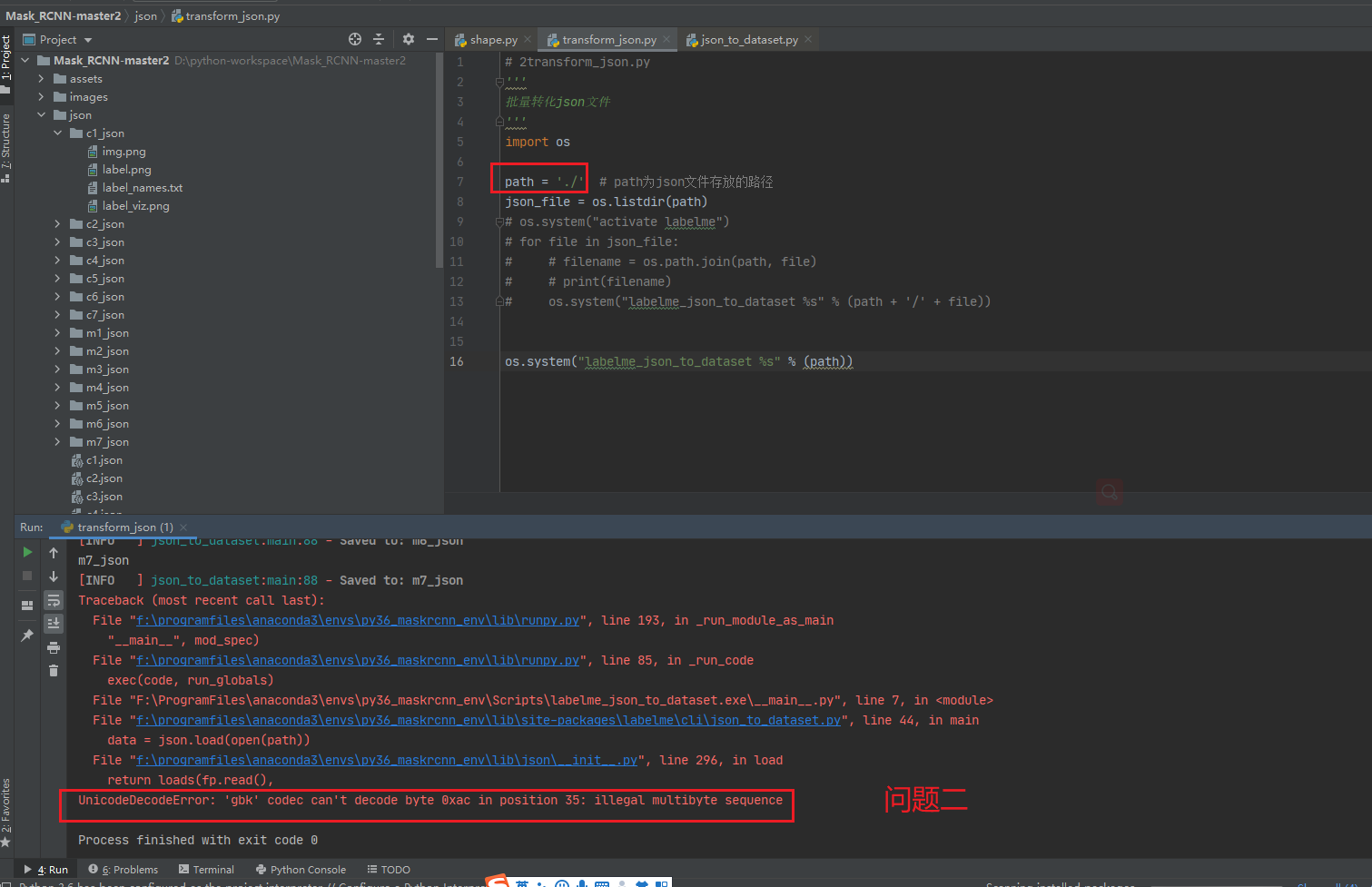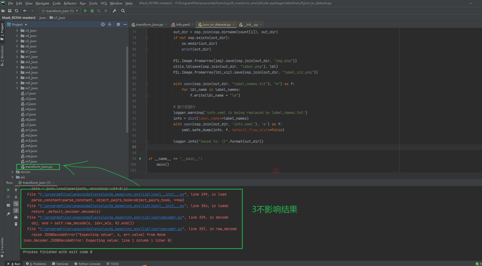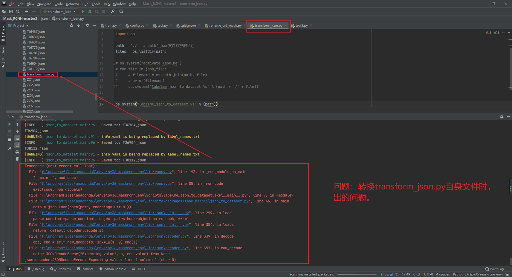 8.执行transform_json.py文件,将json文件转换为模型需要的mask文件时,报错。