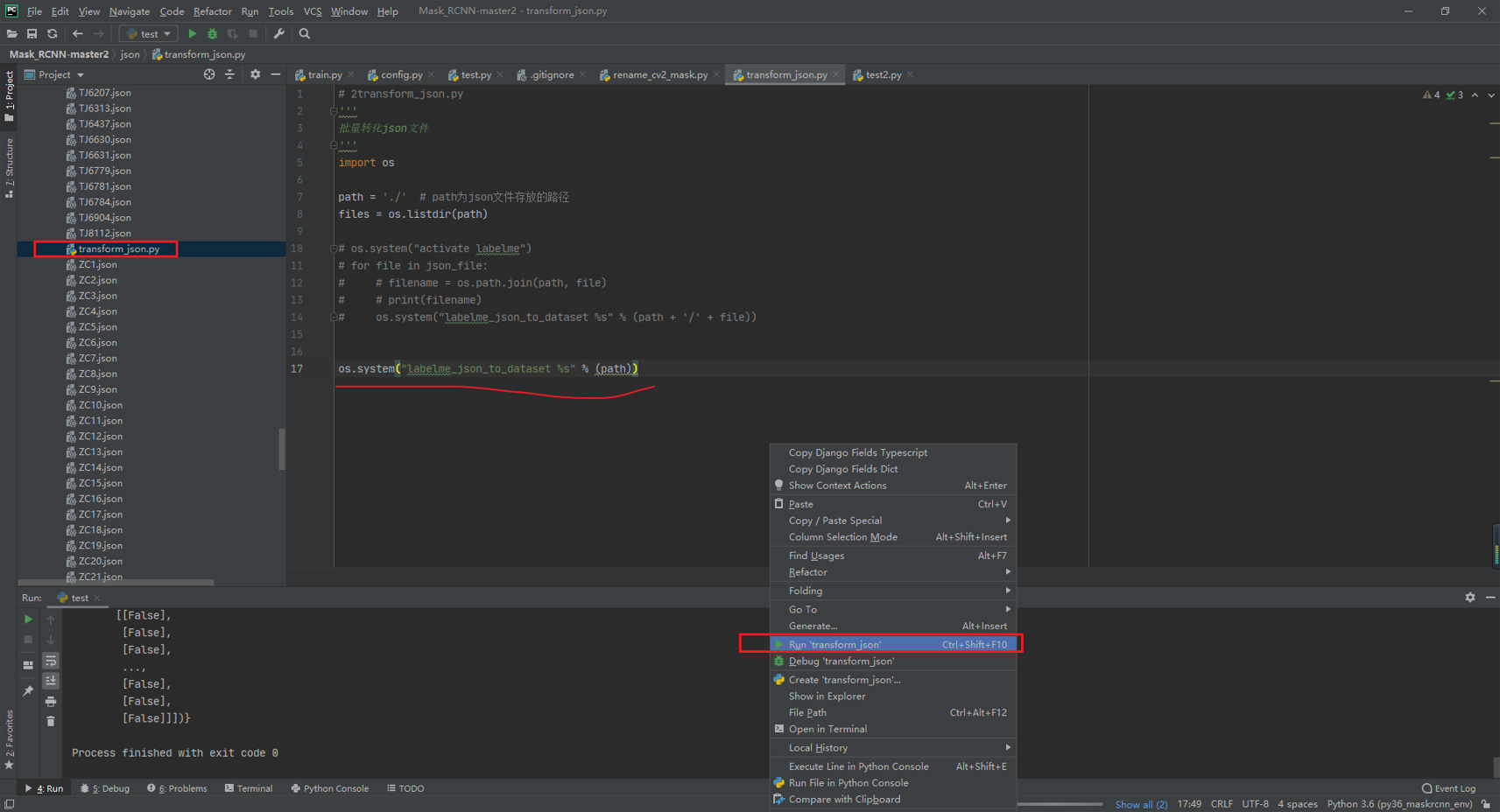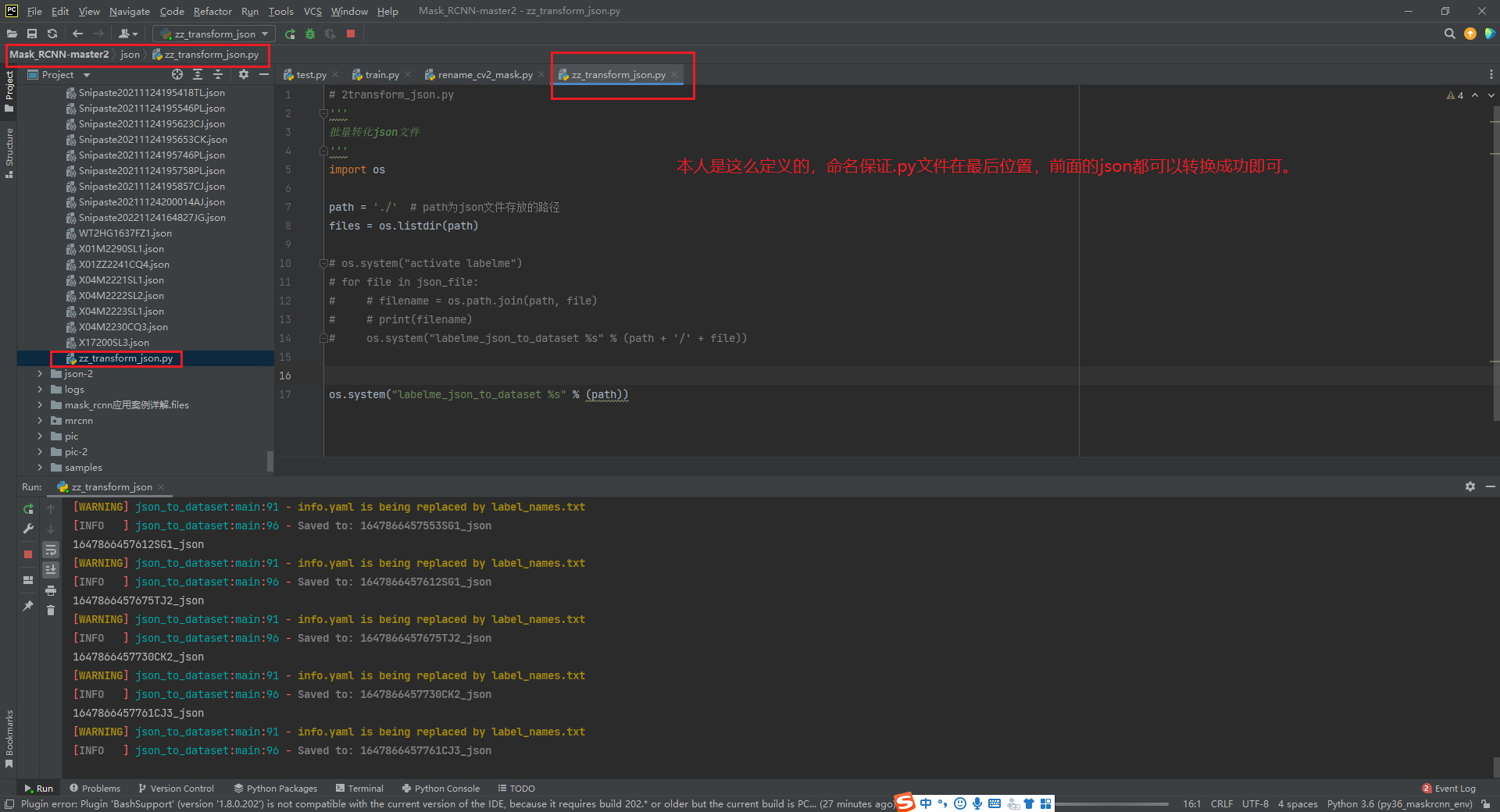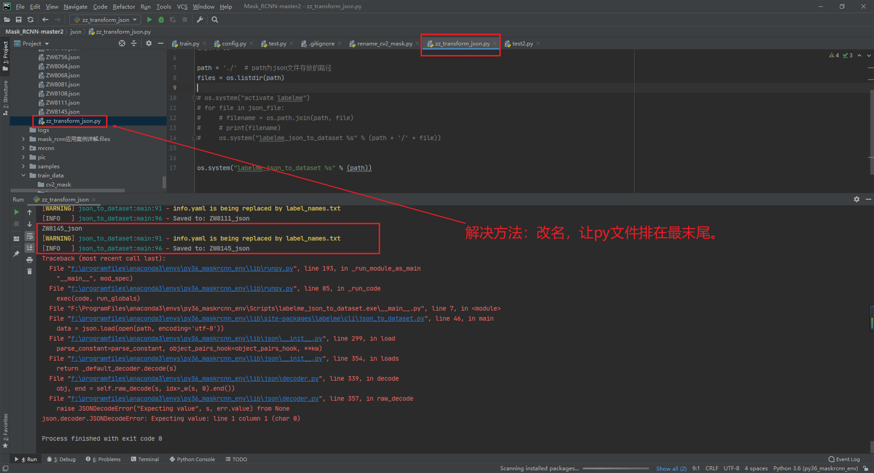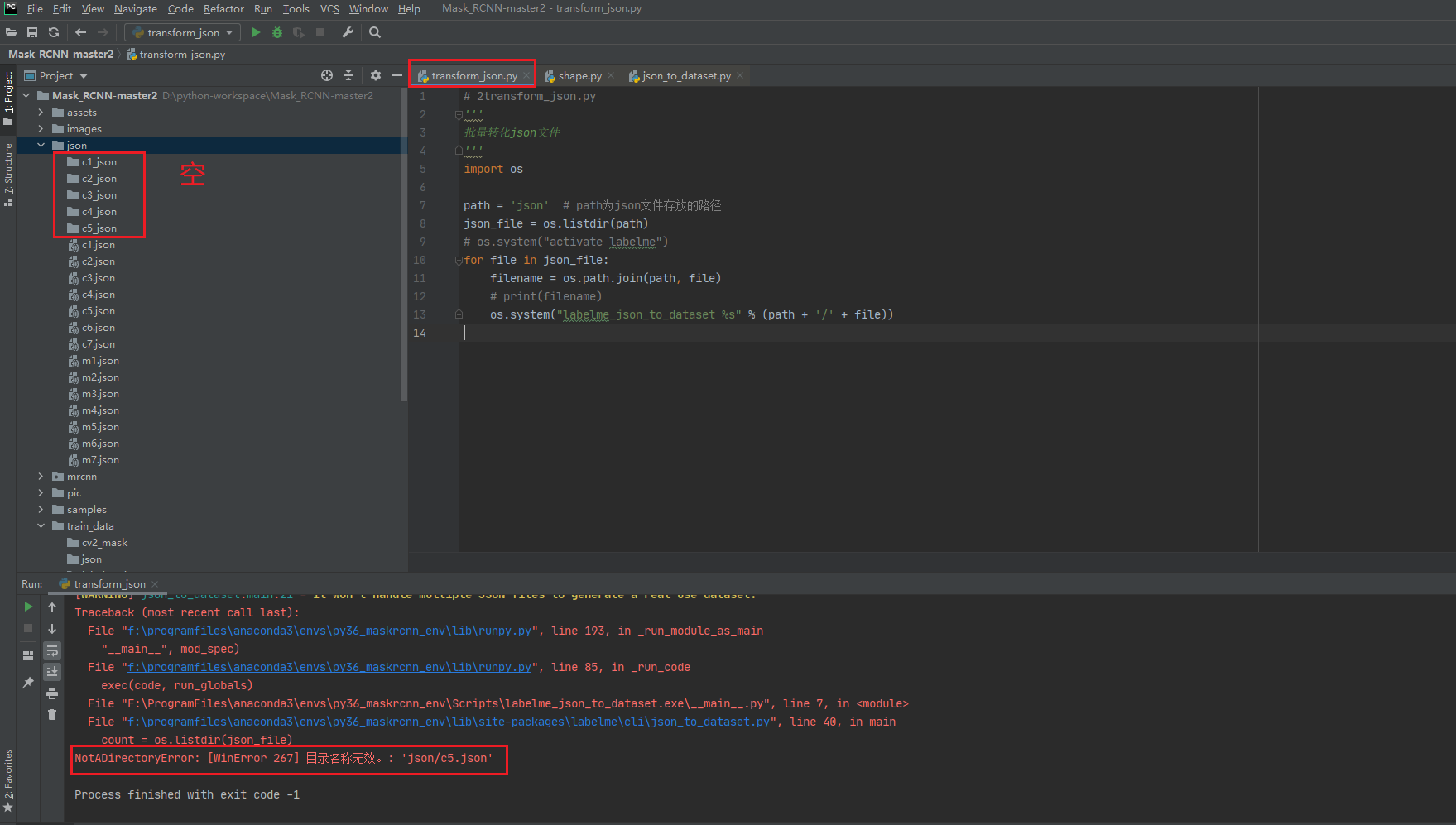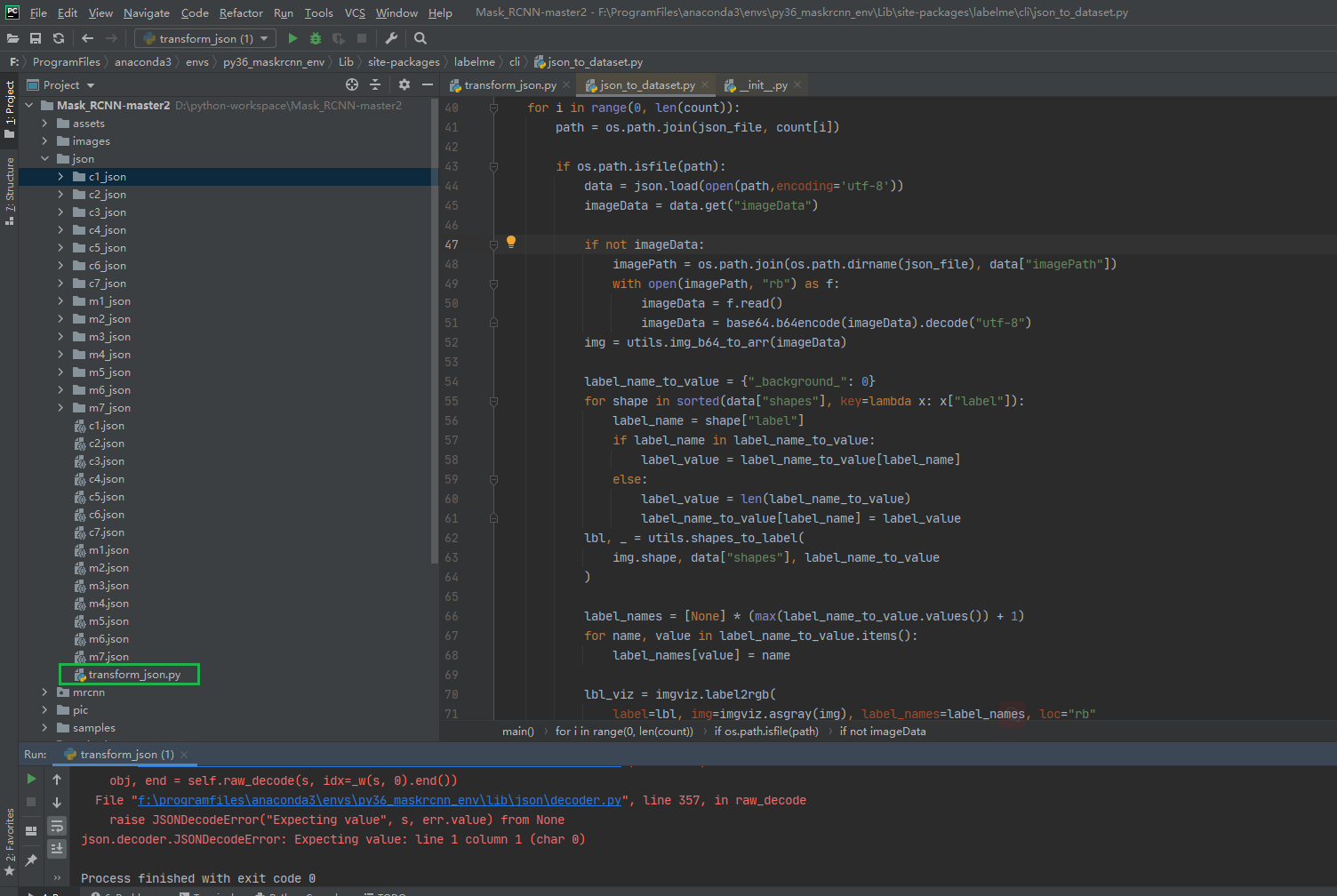 8.执行transform_json.py文件,将json文件转换为模型需要的mask文件时,报错。