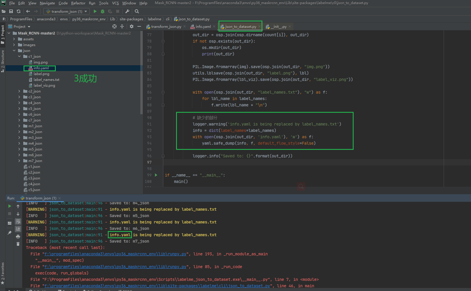 3.问题:json_to_dataset.py不生成info.yaml文件;