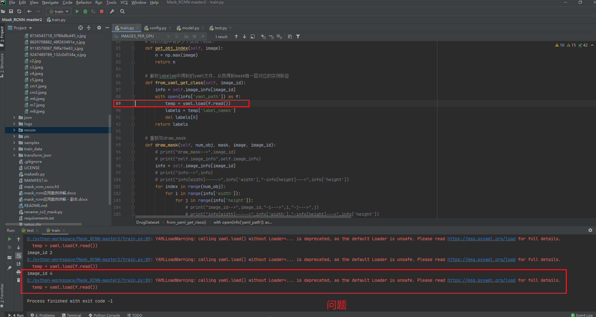 D:/python-workspace/Mask_RCNN-master2/train.py:89: YAMLLoadWarning: calling yaml.load() without Loader=... is deprecated, as the default Loader is unsafe. Please read https://msg.pyyaml.org/load for full details.