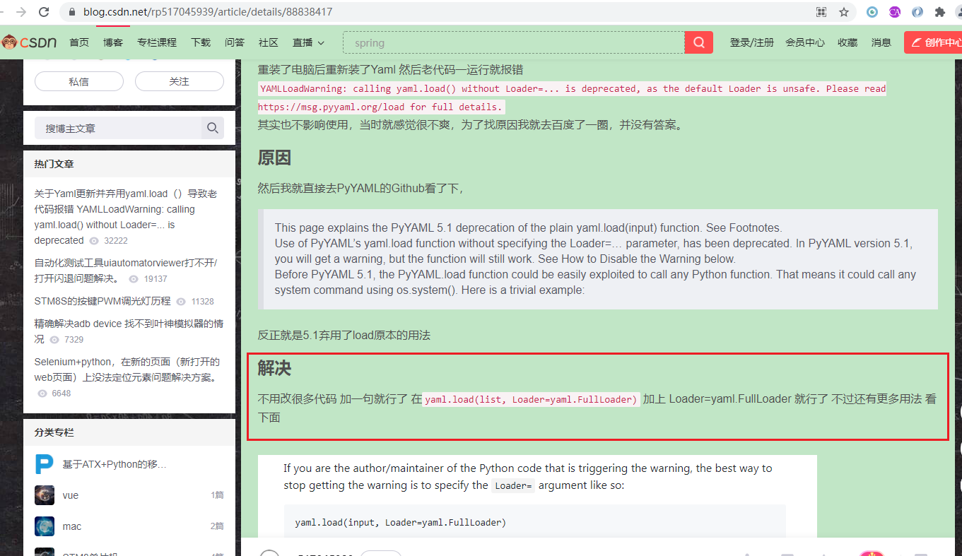 关于Yaml更新并弃用yaml.load()导致老代码报错 YAMLLoadWarning: calling yaml.load() without Loader=... is deprecated_R_Rick-CSDN博客