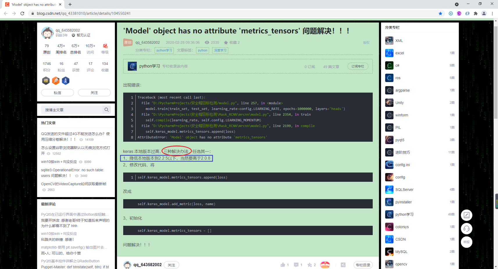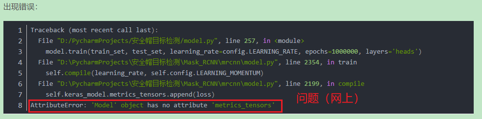 参考资料:'Model' object has no attribute 'metrics_tensors' 问题解决!!!_qq_643582002的博客-CSDN博客