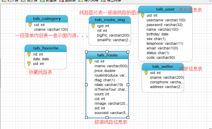 public class Route implements Serializable {private int rid;//线路id,必输private String rname;//线路名称,必输private double price;//价格,必输private String routeIntroduce;//线路介绍private String rflag; //是否上架,必输,0代表没有上架,1代表是上架private String rdate; //上架时间private String isThemeTour;//是否主题旅游,必输,0代表不是,1代表是private int count;//收藏数量private int cid;//所属分类,必输private String rimage;//缩略图private int sid;//所属商家private String sourceId;//抓取数据的来源idprivate Category category;//所属分类private Seller seller;//所属商家private List<RouteImg> routeImgList;//商品详情图片列表