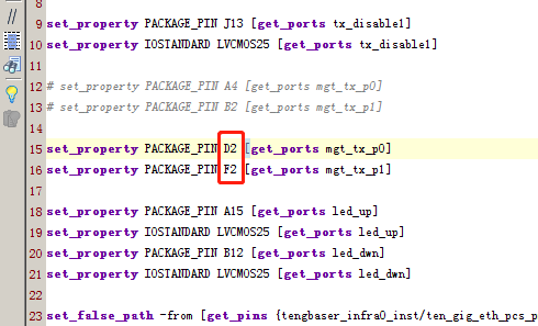 set_property IOSTANDARD LVCMOS25 [get_ports tx_disable0]set_property PACKAGE_PIN J13 [get_ports tx_disable1]