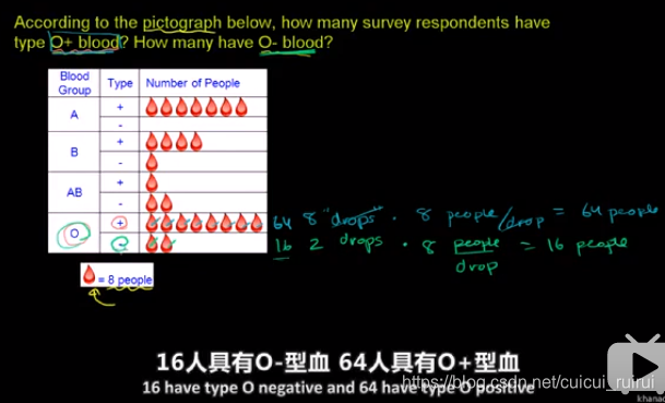 用象形图像表示数据。下图中用一个血滴表示八个人。