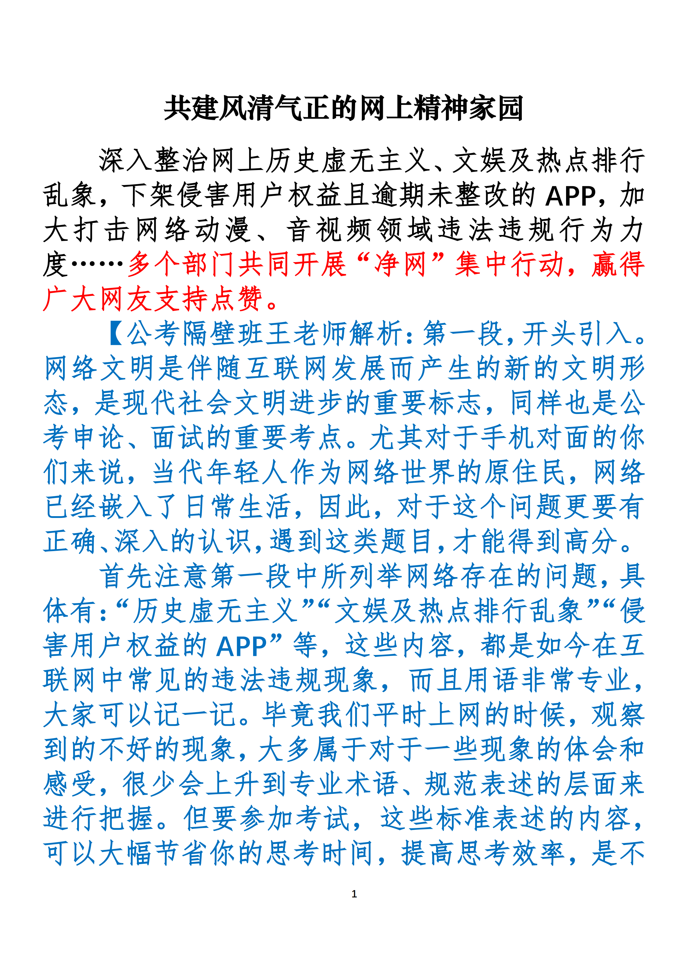 本文主要是介绍人民日报申论范文:共建风清气正的网上精神家园,希望对大家解决编程问题提供一定的参考价值,需要的开发者们随着小编来一起学习吧!