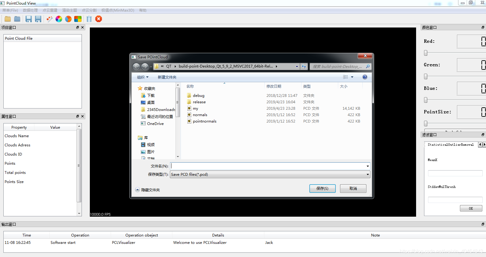 Open 可以实现对 pcd, ply 和 obj 等格式文件的多类型打开,Save 也可以将文件保存成 pcd, ply 等多种类型,这样也就实现了点云的格式转换功能: