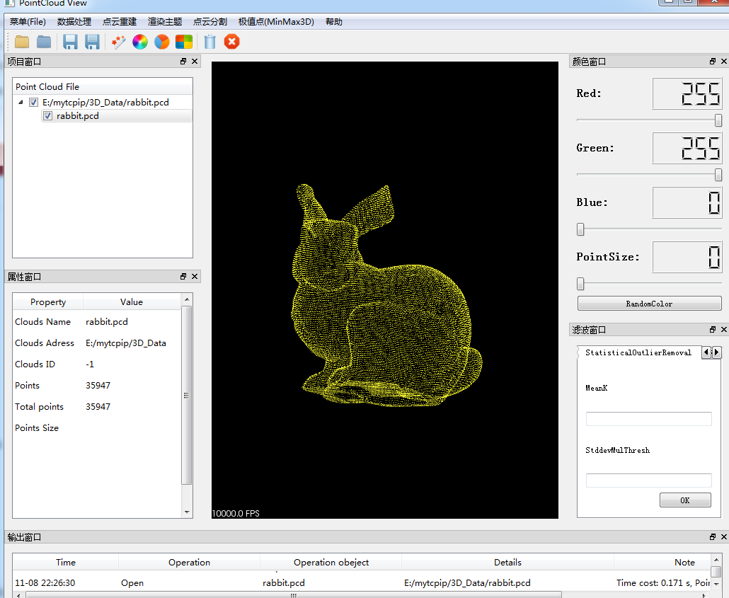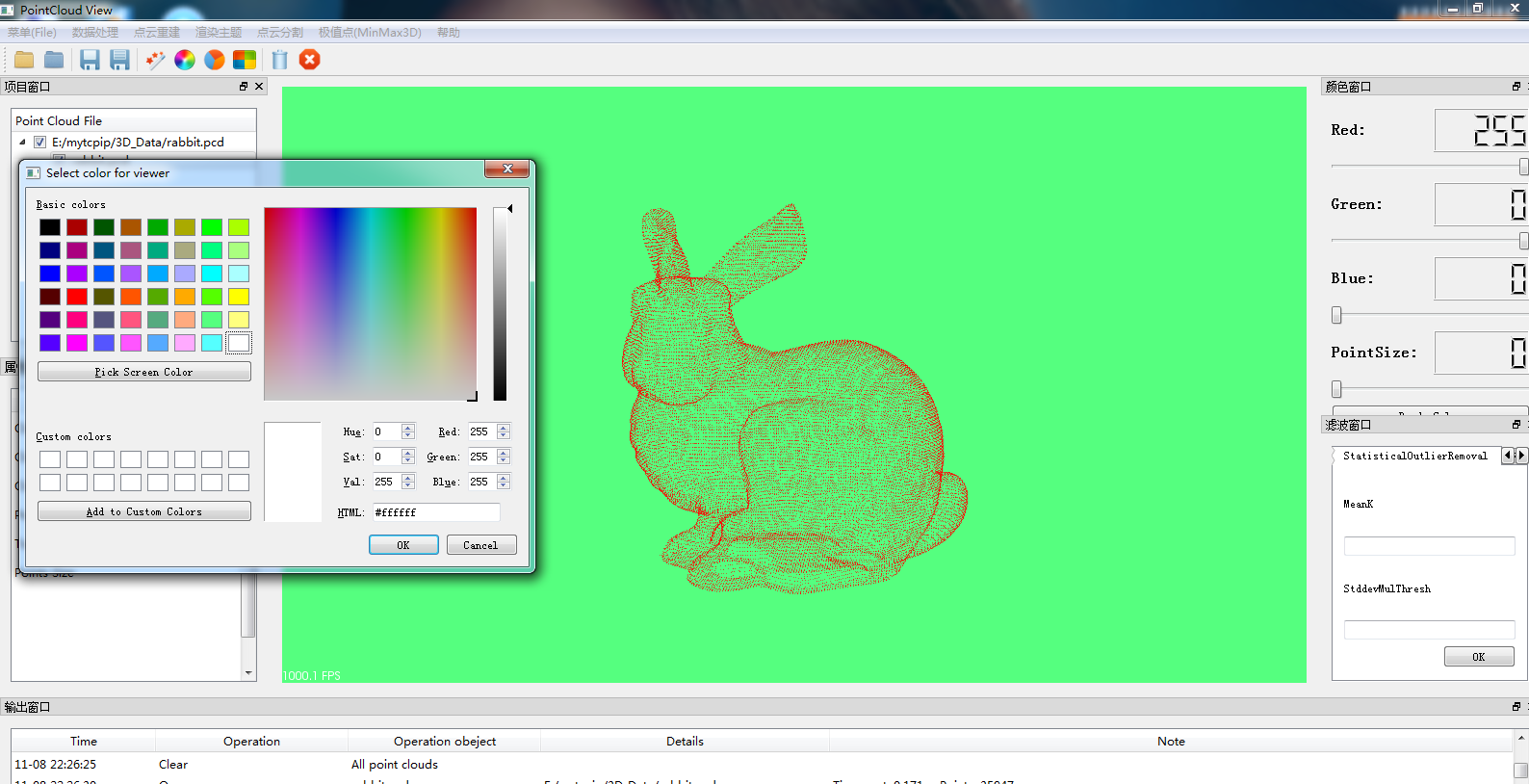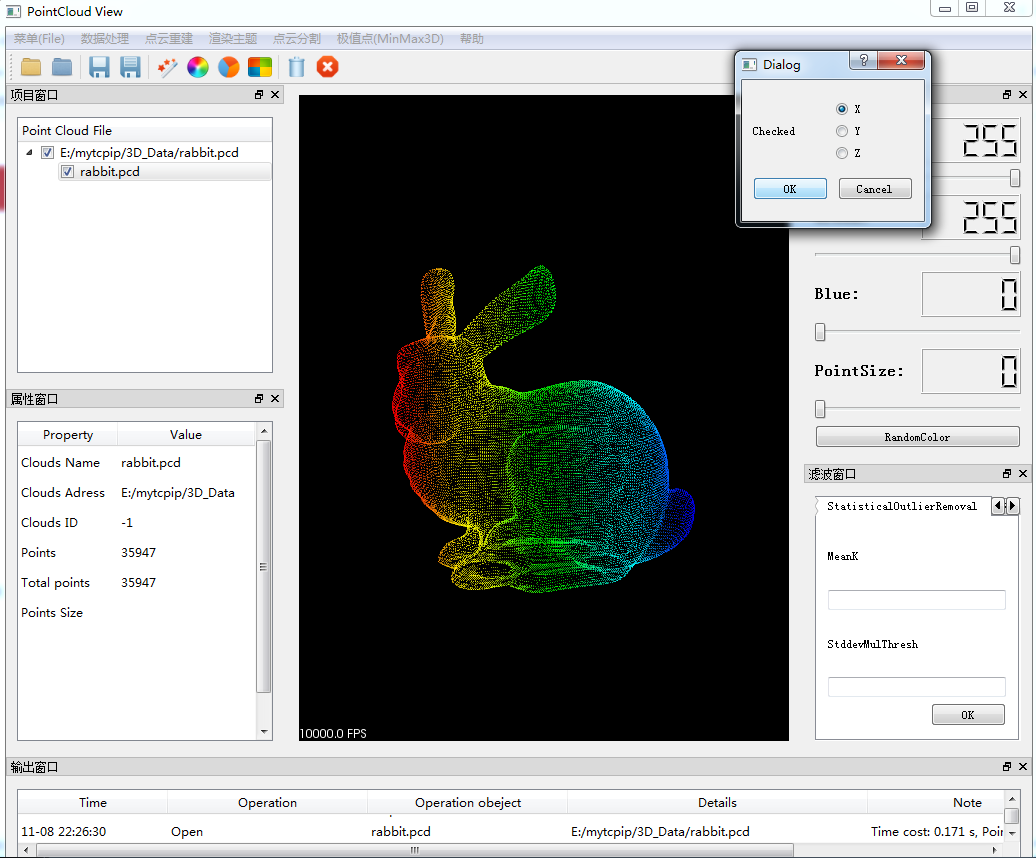 点云中的点不但具有三维信息(x, y, z 坐标),还具有颜色信息(R, G, B),为了更形象地描述点云模型,抑或是为了区分不同点云模型,出于这样的目的,我们需要对点云模型的颜色进行修改。具体包括的功能为: