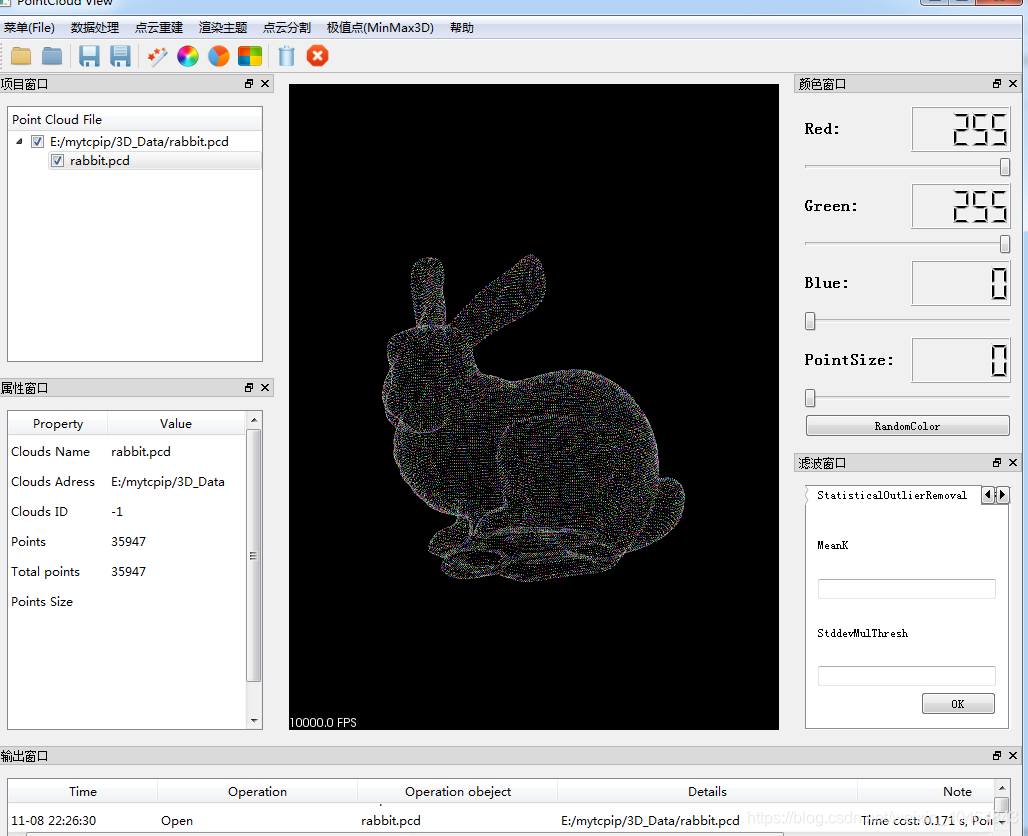 3、数据图形的处理,包括数据滤波,点云数据的采样,点云数据的压缩和法线的显示。