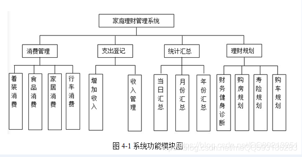 一个家庭理财管理系统,家庭理财管理系统,主要包括消费管理模块、收入管理模块、统计汇总模块及理财规划模块等。每个主模块下又分为几个子模块。具体功能描述如下: