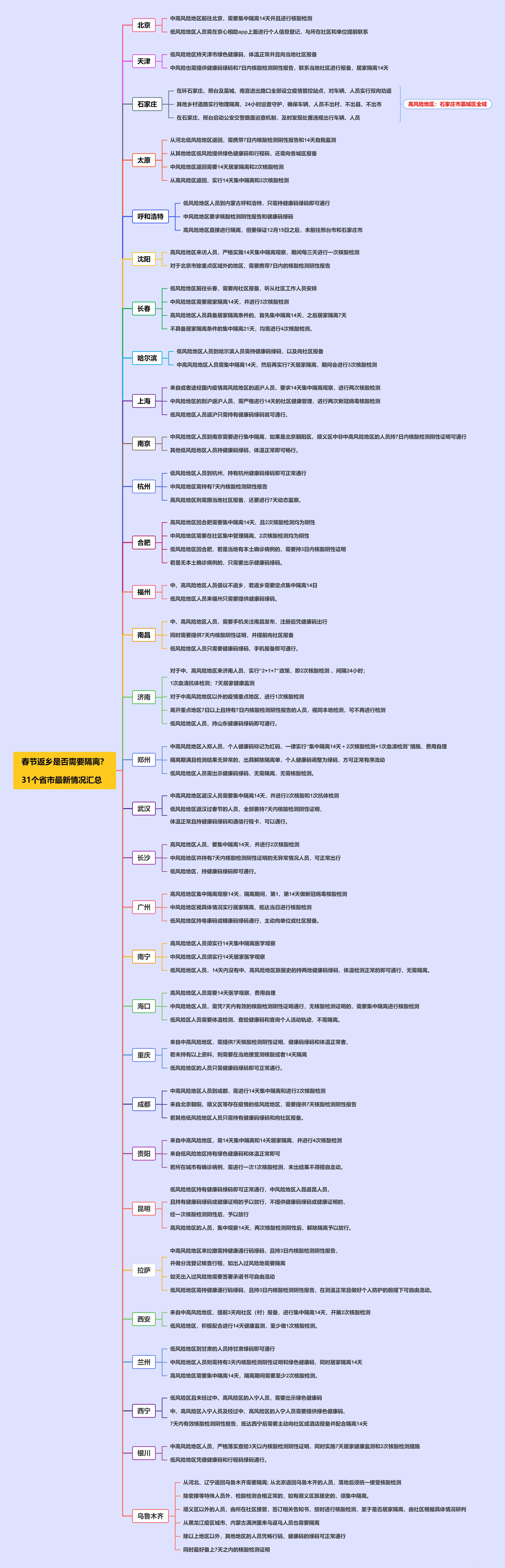 春节返乡是否需要隔离?31个省市最新隔离政策汇总