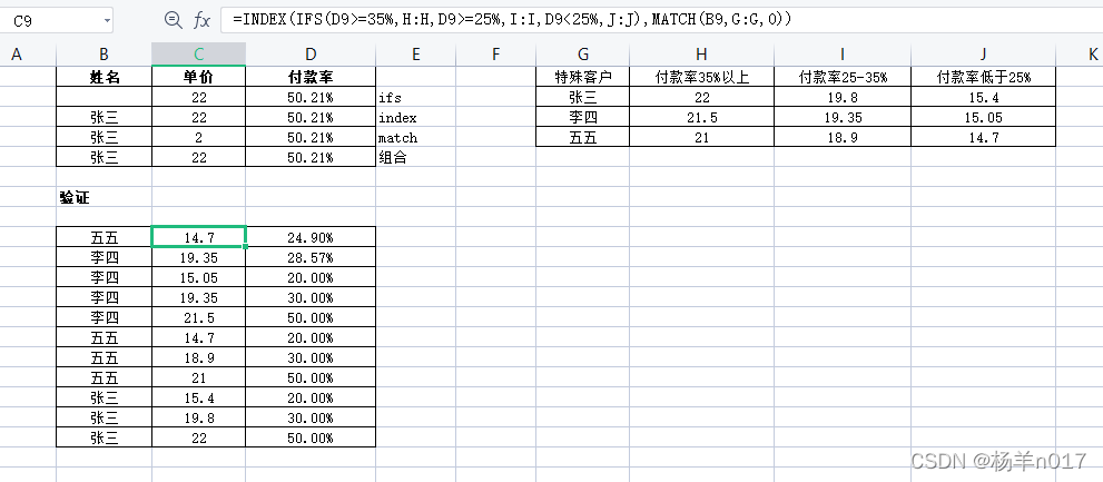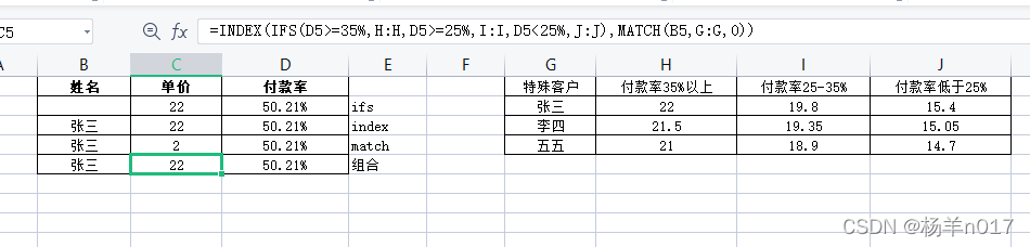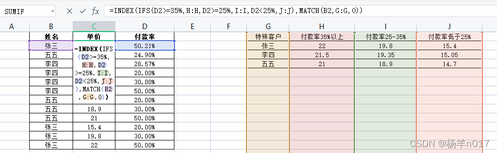 问题:根据客户姓名和付款率返回对应的单价