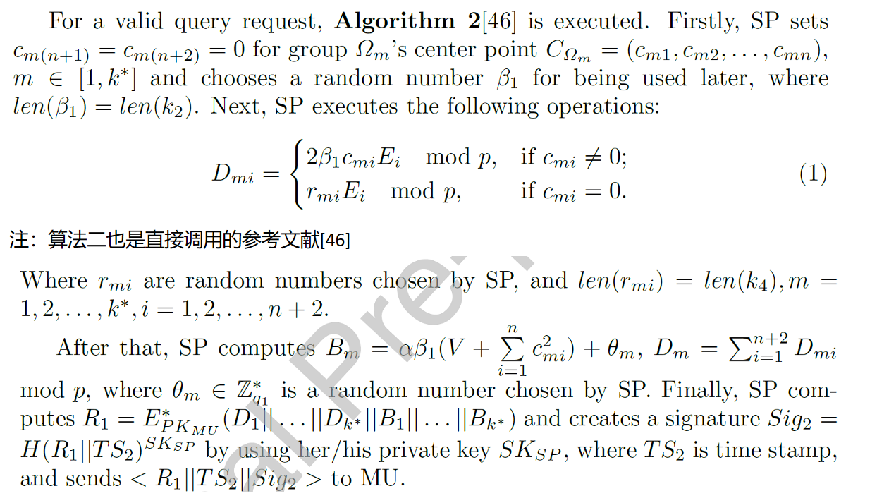 在本文中提出了一种高效且保护隐私的基于ML-kNN的疾病预诊断方案,命名为CREDO。使用CREDO,可以保护医疗用户健康信息的隐私和诊断前模型数据的机密性,且计算开销低。对于已注册的MU的查询请求,MU与SP将进行两次交互,第一次交互用于预诊断,第二次交互用于最终结果。两者都直接在SP加密查询向量上操作而不获取原始数据,导航和预诊断的结果也只能由MU解密并且诊断前诊断结果的准确性也是取决于MU的选择。因此,MU可以获得在线高效的预诊断服务。详细的安全分析表明了该算法的安全强度和隐私保护能力,并进行了大量的实验验证了该算法的有效性和准确性。