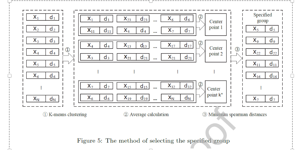 根据图5可以发现,如何得到特定的类以及类中实例的一个过程,先是在所有数据上进行k-means聚类,然后计算聚类后的聚类中心,根据聚类中心到查询向量V之间的spearman距离,选择距离较小的聚类中心,然后选取属于这些聚类中心的实例。