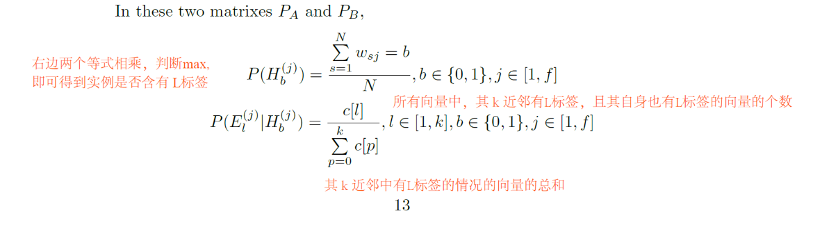 分母即为这个向量有l标签,其k近邻有0∼m个有标签的情况的向量个数总和。
