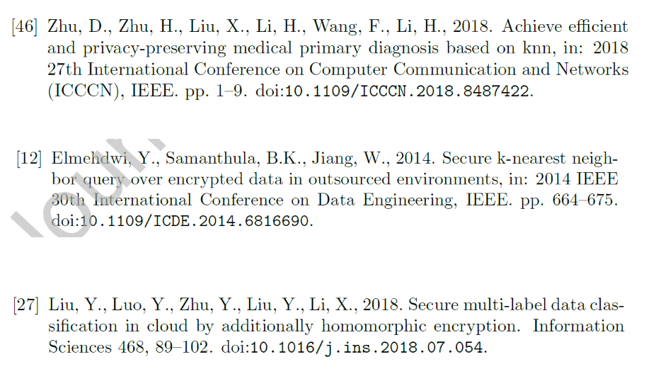 Zhu D, Zhu H, Liu X, et al. CREDO: Efficient and privacy-preserving multi-level medical pre-diagnosis based on ML-kNN[J]. Information Sciences, 2020: 244-262.