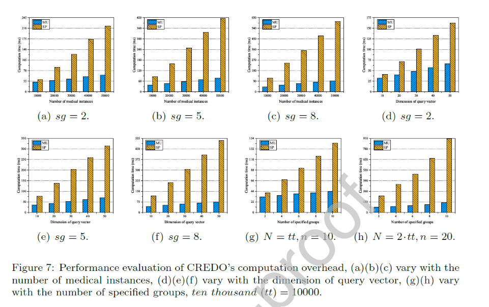 结论:CREDO能够在保护MU的查询向量和SP的预诊断模型的前提下,提供可验证的多层次医疗预诊断服务。