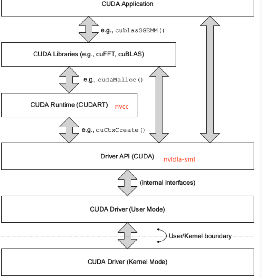 libcudart.so以及nvcc)是由CUDA Toolkit installer安装的。(CUDA Toolkit Installer有时可能会集成了GPU driver Installer)。nvcc是与CUDA Toolkit一起安装的CUDA compiler-driver tool,它只知道它自身构建时的CUDA runtime版本。它不知道安装了什么版本的GPU driver,甚至不知道是否安装了GPU driver。