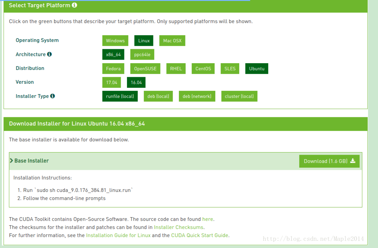 到 CUDA Toolkit Download 下载所需版本,以 cuda_9.0.176_384.81_linux.run为例: