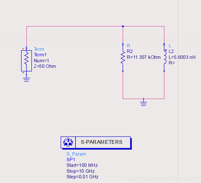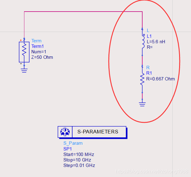 2)根据该资料,我们使用ADS模拟一个RL串联的电感如下: