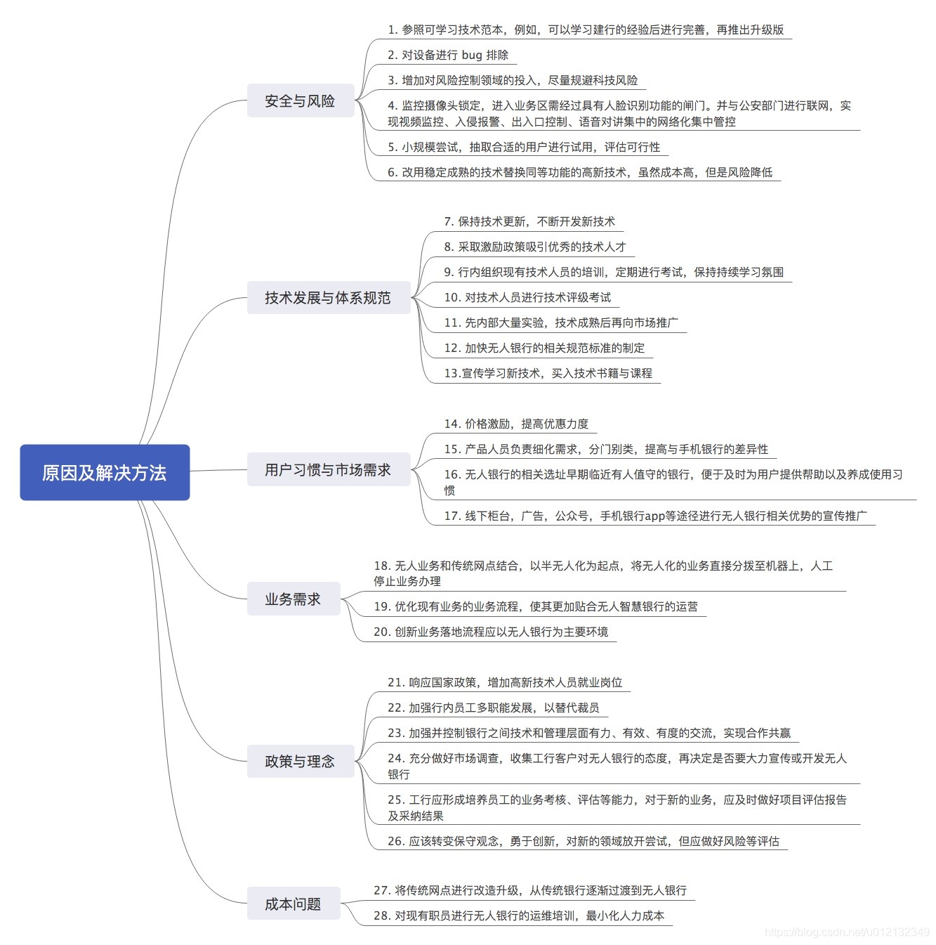 - 原因确定好了后,平均分布,每个人对自己负责的原因给出解决的策略方案