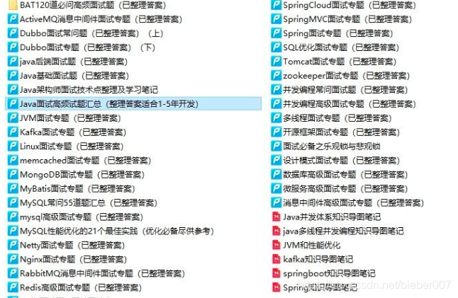 今天给大家分享下我花费一个月时间整理的Java架构面试专题及答案,其中大部分都是大企业面试常问的面试题,可以对照这查漏补缺,当然了,这里所列的肯定不可能覆盖全部,不过也希望能对即将找工作的朋友起到一些帮助!后续如果找到好的工作可以来评论区报个喜讯哦。祝大家都能拿到心仪offer