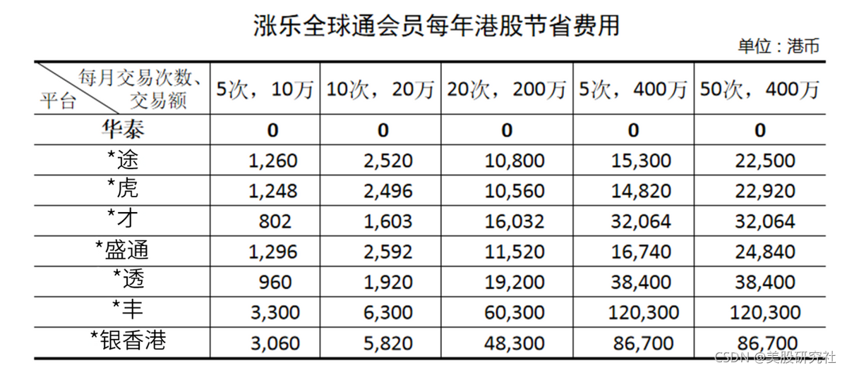 哪怕每月只交易5次,每次额度就10万,涨乐全球通对比某途、某虎都能省下超过1200港元的佣金和平台费,交易频次和金额上去了,省得更多。
