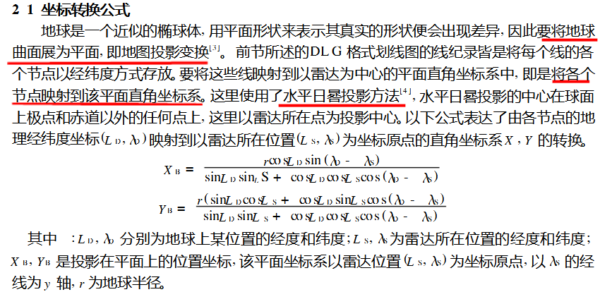 今天简单学习了地图投影方式,有很多中,多普勒天气雷达地图为水平日晷投影方法(等距离方位投影?应该是这种方式吧,以雷达为中心,希望懂GIS的人指点一下),具体查阅了《多普勒天气雷达地图系统的设计与实现》文章: