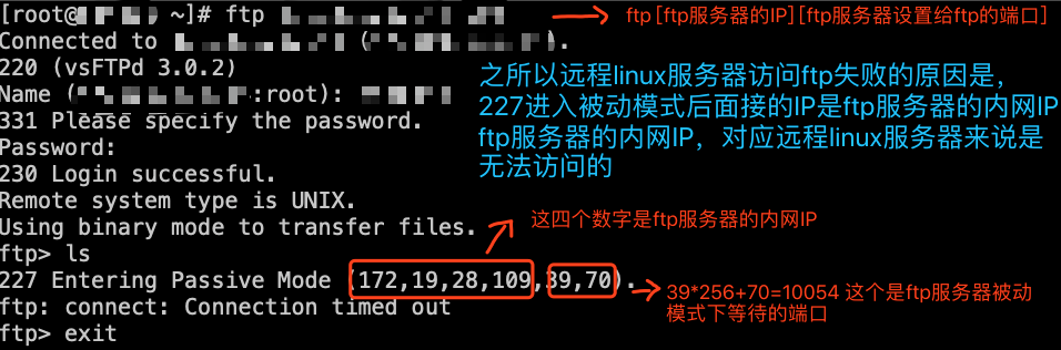 3. 在一台远程linux服务器上登录,提示227,并且一直不往下执行