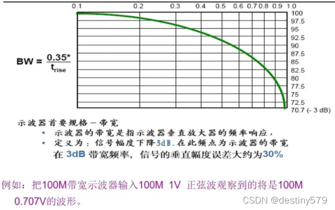 带宽=(K/上升时间)。带宽<1GHz的示波器的K一般为0.35,带宽>1GHz的示波器K通常在0.4 - 0.45之间