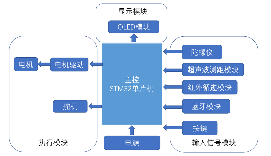 - 主控制器。选取一款单片机或嵌入式芯片,实现小车的传感器信号获取、遥控接口、电机驱动、控制算法、液晶显示等功能。