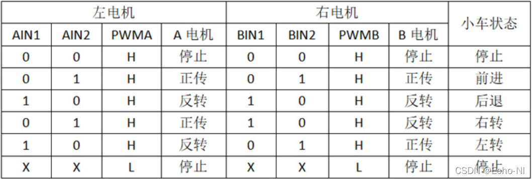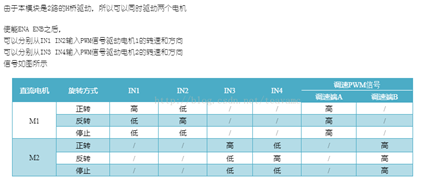 而剩下的引脚和L298N基本一直。对应工作状态图如下: