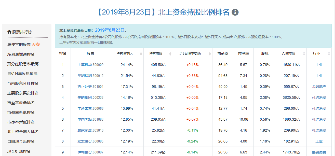 本文主要是介绍【08月23日】北上资金持股比例排名,希望对大家解决编程问题提供一定的参考价值,需要的开发者们随着小编来一起学习吧!