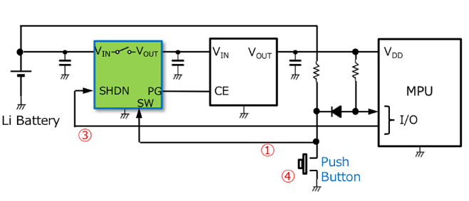 ③完成了出厂试验、最终处理之后,从MCU等向SHDN端子输入"H"