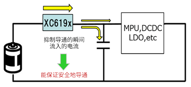 以限制输出容量的冲击电流为目的,作为负载开关也非常有效。