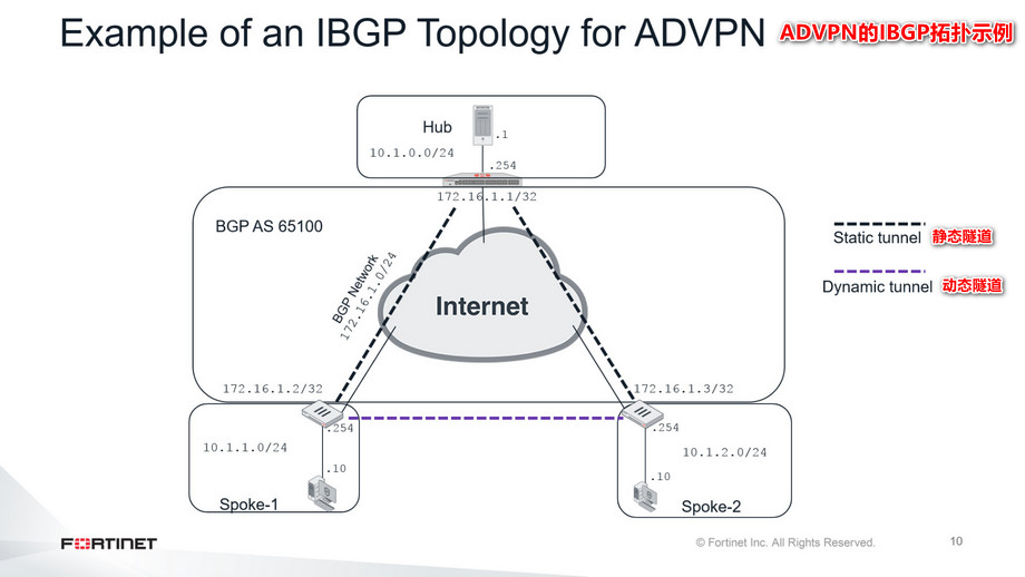 如前所述,ADVPN需要使用动态路由协议。在这节课中,你将学习如何使用IBGP配置ADVPN。