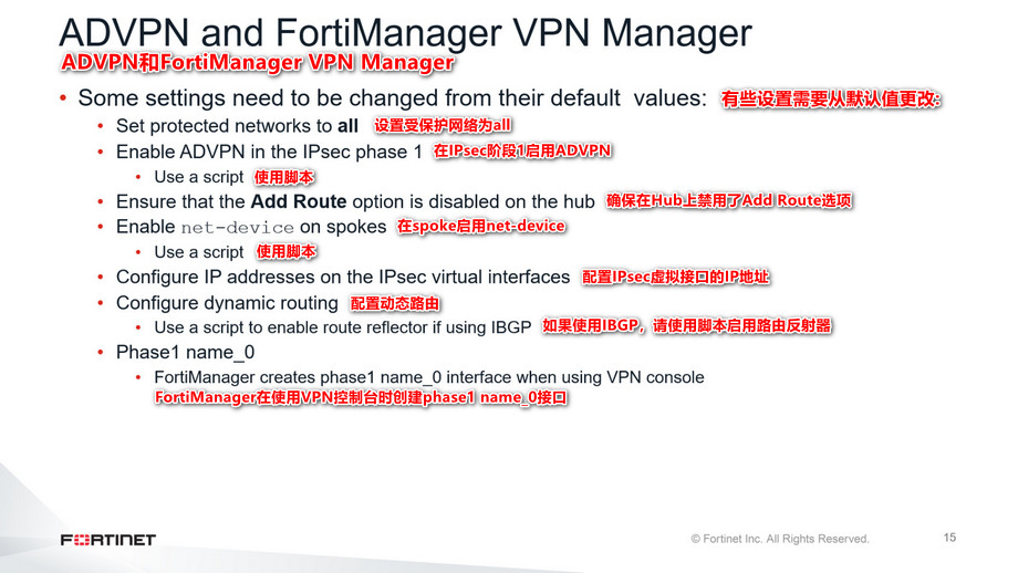 如果你使用VPN管理器在FortiManager上配置VPN,请记住以下事项: