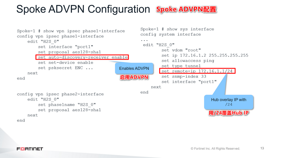 这张幻灯片显示了一个spoke中的ADVPN配置: