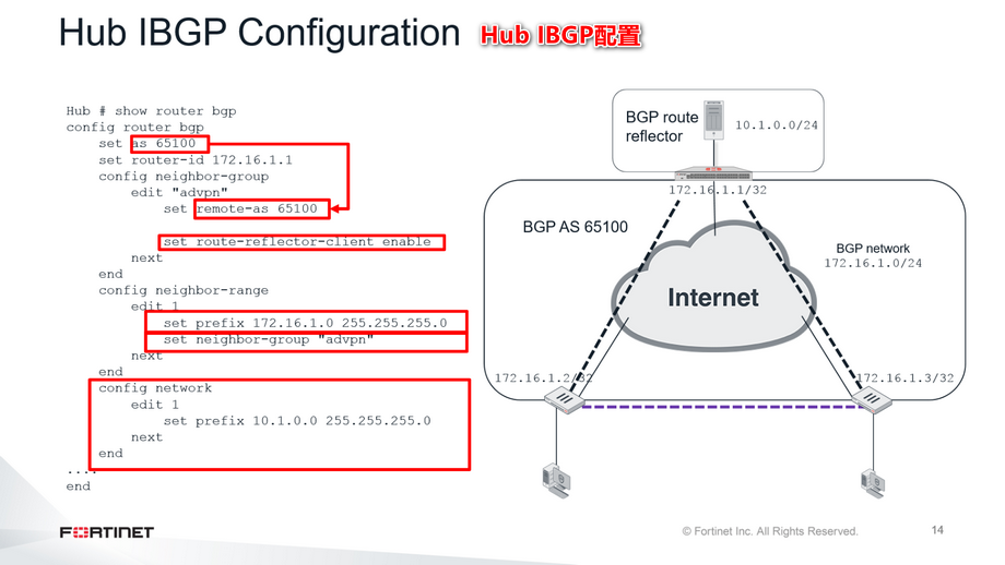 这张幻灯片显示了集线器中的IBGP配置: