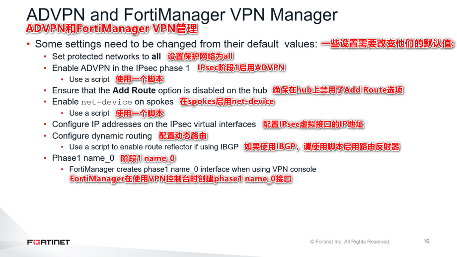 如果你使用VPN管理器在FortiManager上配置ADVPN,请记住以下内容: