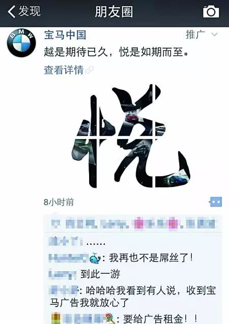 微信在前些阶段开始在朋友圈进行精准广告投放,是基于腾讯收集到用户画像特征,推送了宝马的广告。