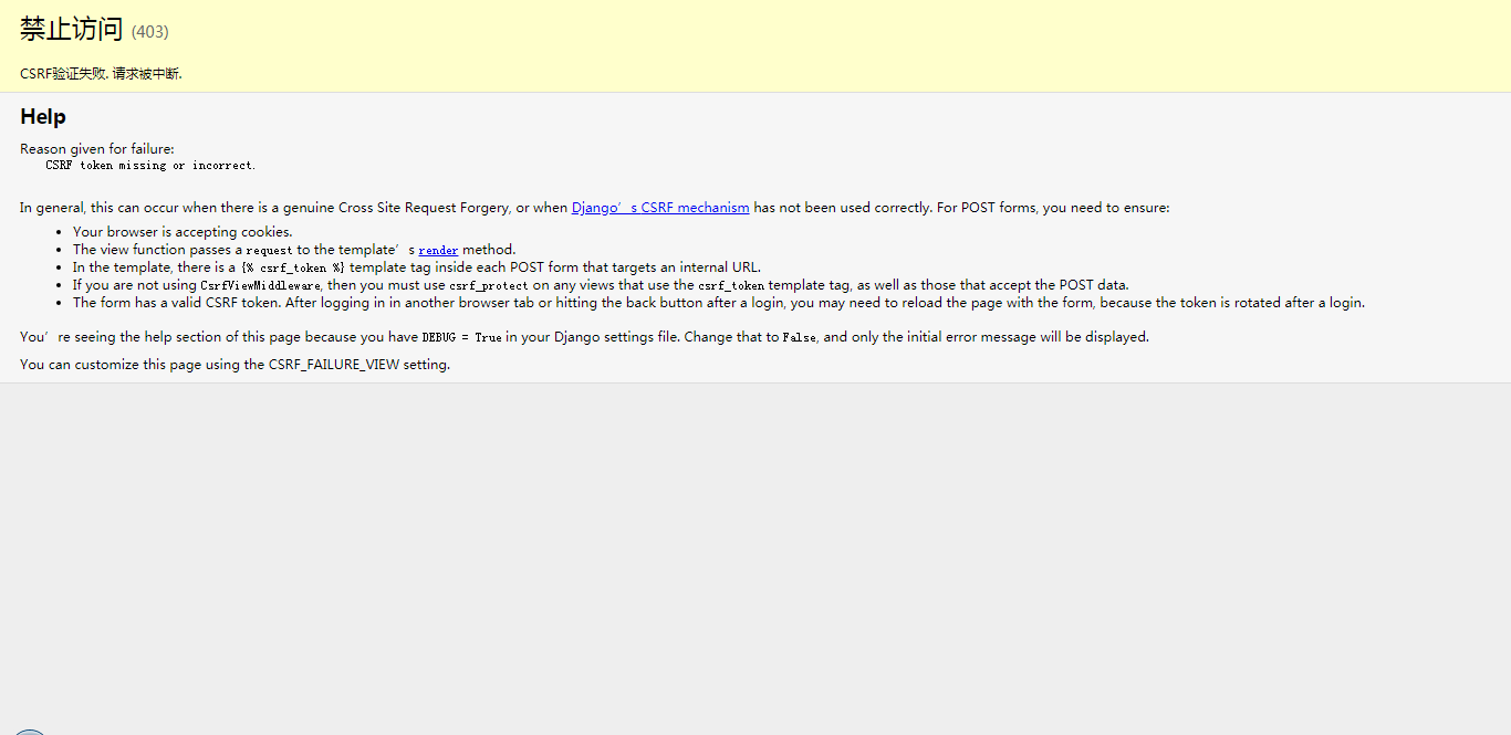 第二个是在视图函数前加上@csrf_exempt装饰器,有这个就可以 让单独的视图函数跳过验证